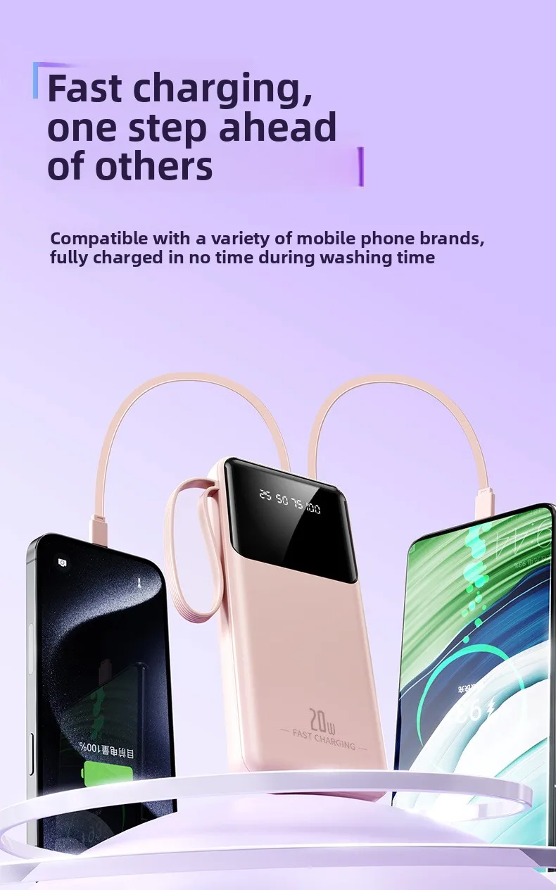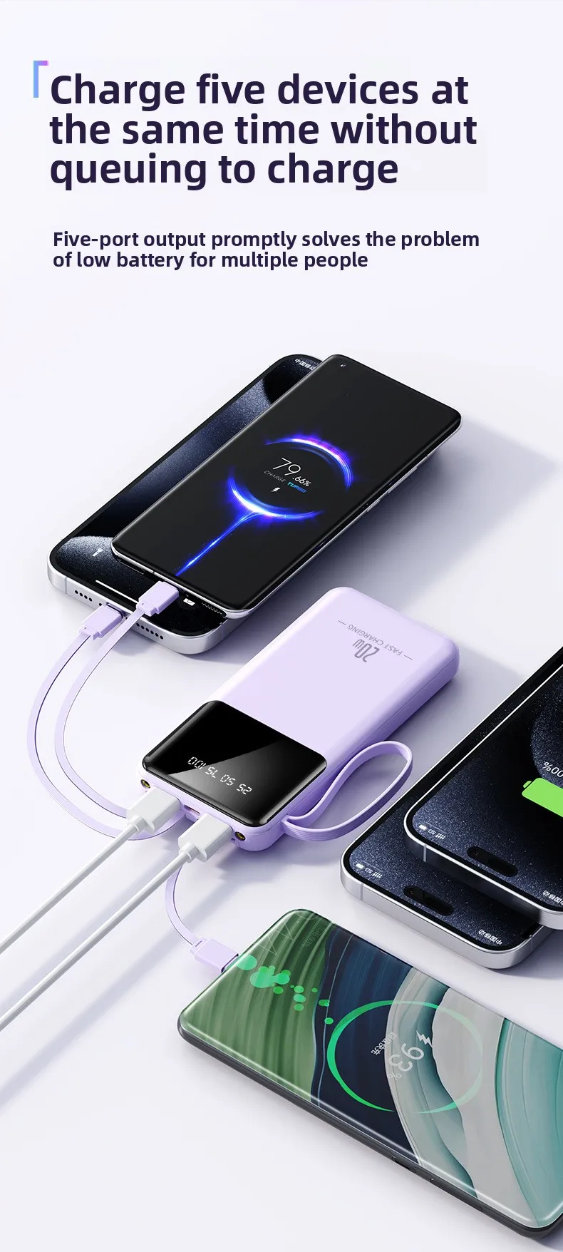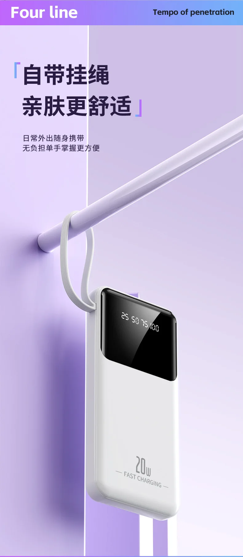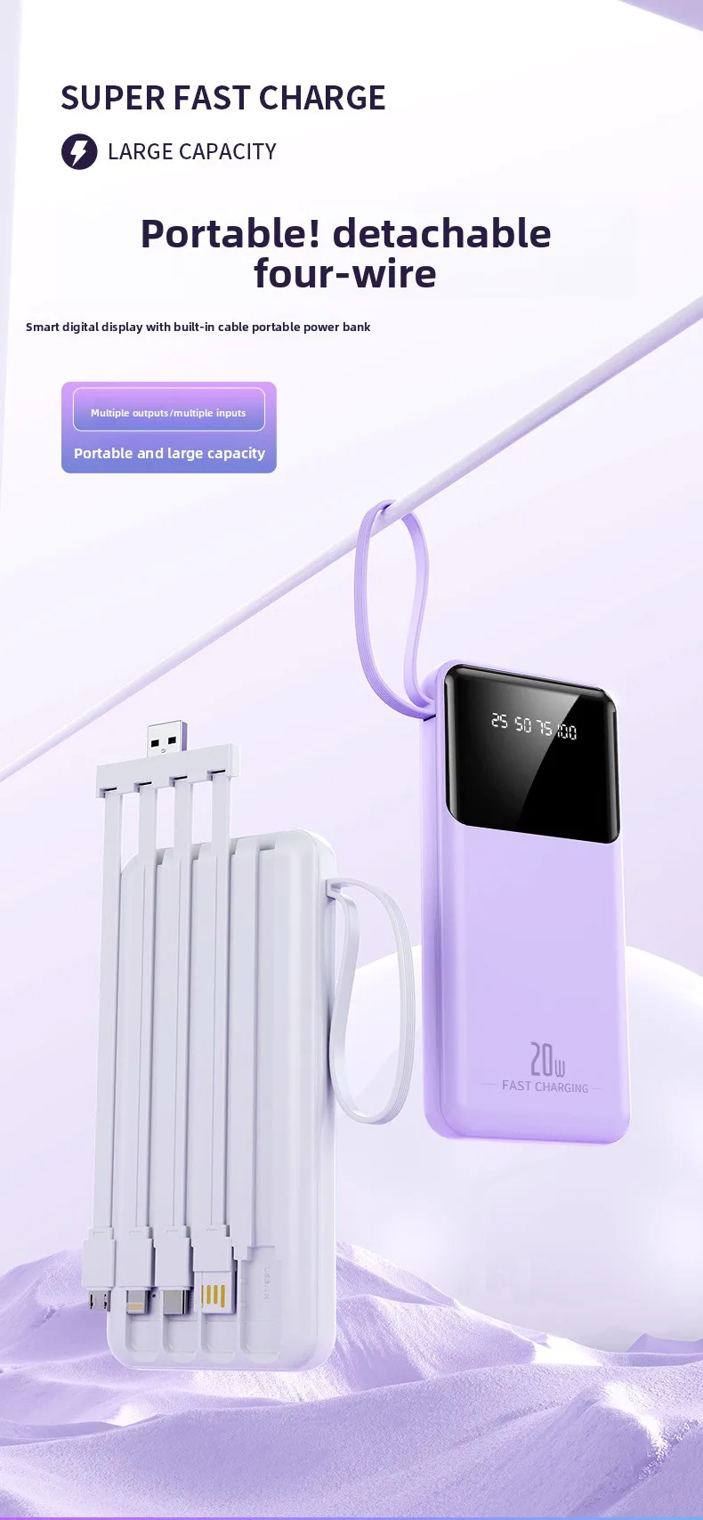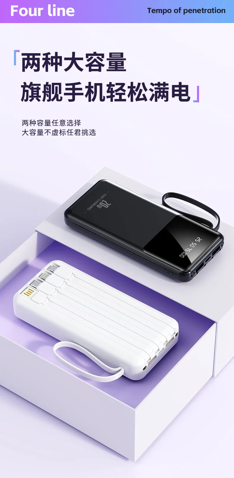 20000mAh Portable Mobile Power Bank With 4 Cables