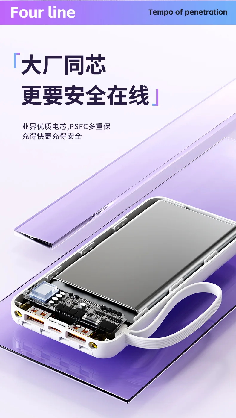 【The Safety Of The Power Bank】Built-in intelligent chip automatically identifies the charging device, Safety circuit design, multiple protection - overcharge, over-discharge, overcurrent, short circuit, overvoltage, overtemperature.