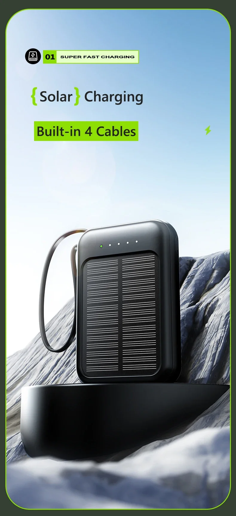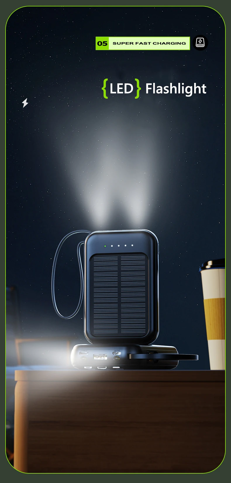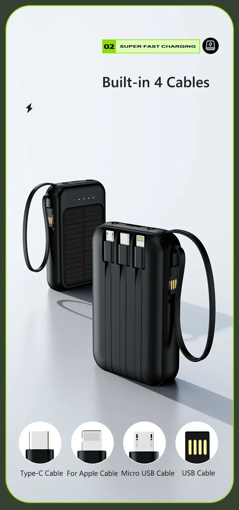 50000mAh Solar Charging Power Bank With Built In Cables And LED Light